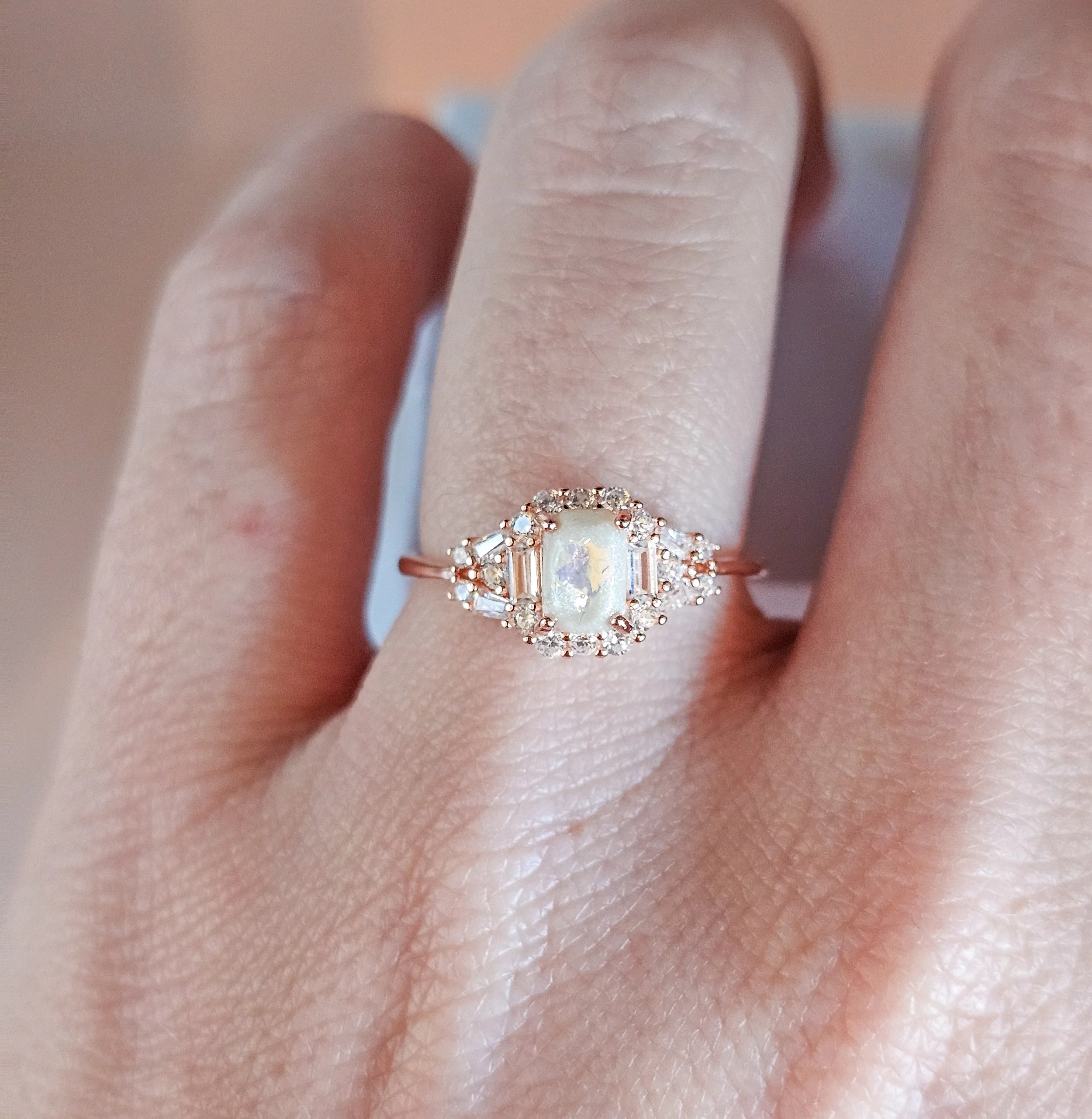 Material: 925 sterling silver with white gold/rose gold plating. This plating is nickel-free, so it will not turn your fingers green!